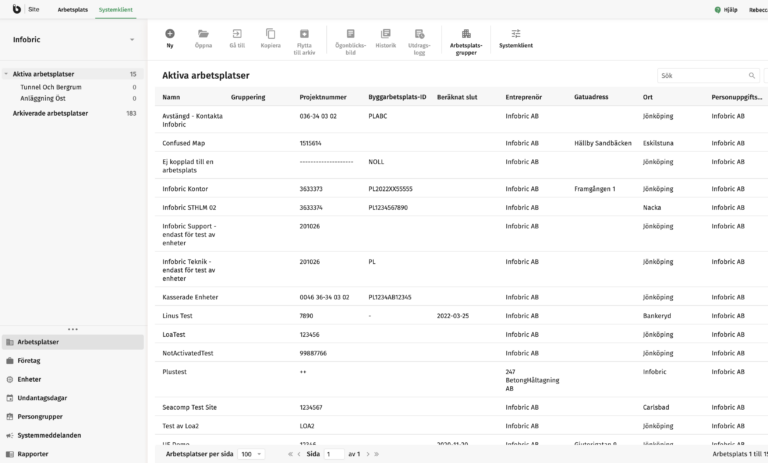 Oavsett om du har ett stort eller litet projekt, få eller många arbetsplatser, så är Infobric Site en flexibel lösning där du har möjlighet att lägga till eller skala ner tjänster så det passar dina behov. Du får översikt över samtliga projekt oavsett var du befinner dig, och kan enkelt exportera närvarolistor och styra behörigheter på arbetsplatsen, helt digitalt.