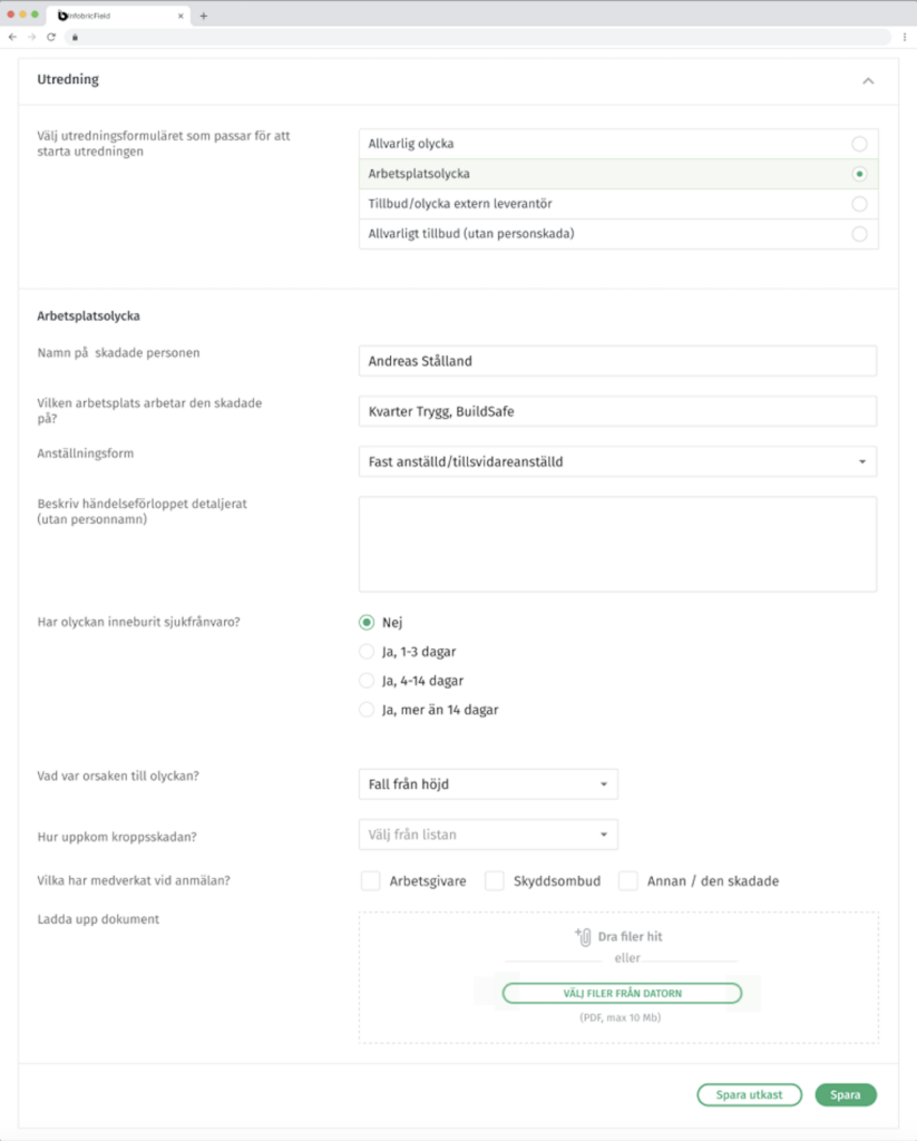 Lägg upp flera olika formulär som lämpar sig för ditt bolags tillbuds- och olyckshantering