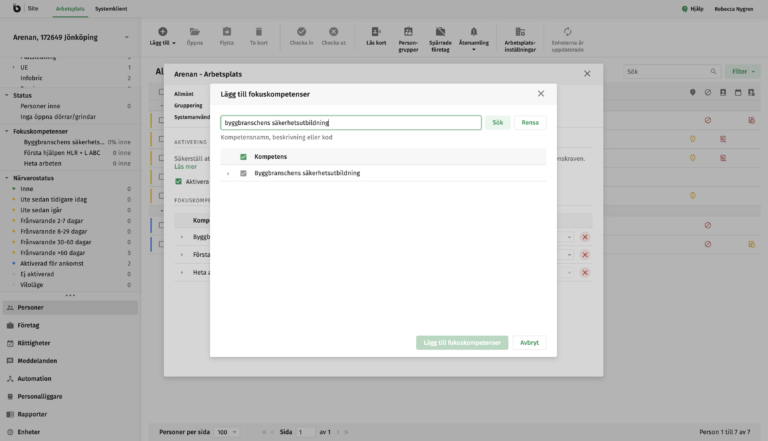 Kom igång med Kompetenser. Med Fokuskompetenser får du allt du behöver för att ha full översikt och uppföljning av kompetenser på byggarbetsplatsen. Fokuskompetenser är en av alla smarta tjänster som du hittar i vårt standardpaket. Standardpaketet hjälper dig att öka säkerheten och produktiviteten med flera smarta funktioner för kommunikation och uppföljning.