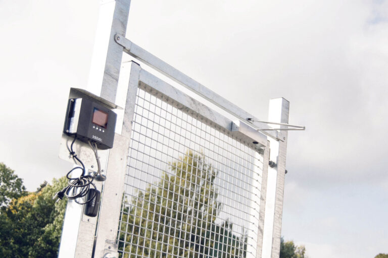 Grinden kommer komplett och färdigmonterad på plåt och är enkel att flytta efter behov. Det är bara att ansluta strömmen, sen är grinden redo att säkra bygget.